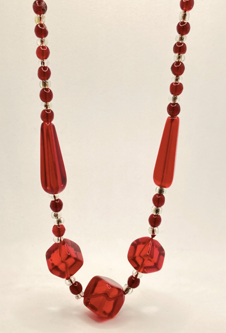 One 1930's Vintage Ruby Red and Clear Lucite Necklace
