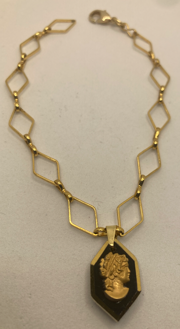 One 18K Gold Plated Bracelet with Vintage Black and Gold Cameo Charm