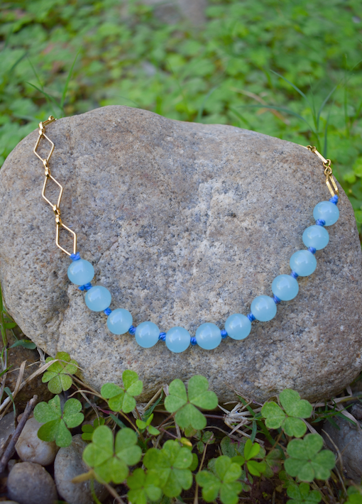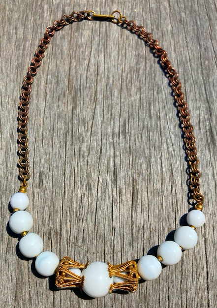 One 1940's-50's Vintage Miraim Haskell Milk Glass and Brass Necklace