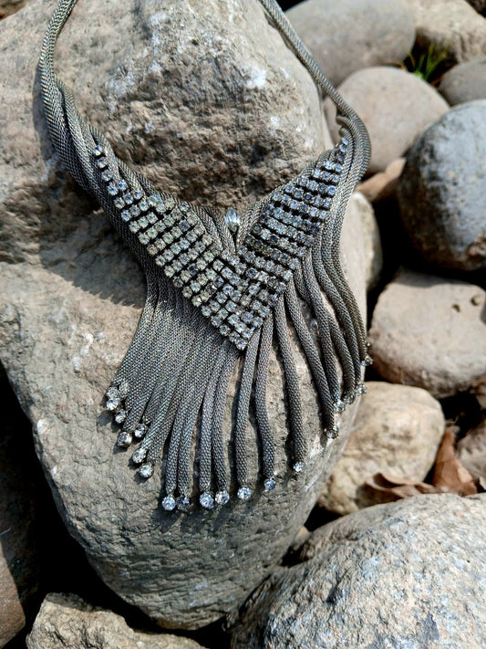 One 1930's Vintage Glass Faceted Rectangular Crystal Necklace